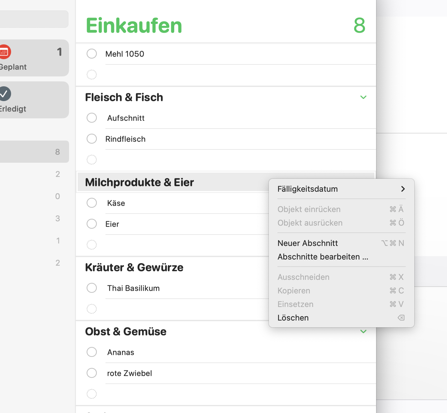 • right click on any category and choose "Abschnitte bearbeiten..."