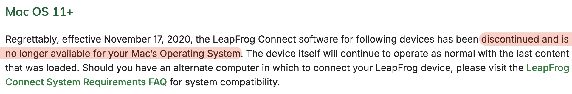 Several years ago, my Mac warned me that an app (LeapFrog Connect for LeapPen) would not be usable on the new iOS and that the developer needed to update it. My children weren't using the app anymore, so I uninstalled it. The new iOS update came out, and I started getting a message upon start up that "Legacy Extension Software: The existing software on your system loaded a legacy system extension by LeapFrog, which will be incompatible with a future version of macOS.” I searched for how to remove it, and a BUNCH of responses from this community said things like, "oh, Apple will work out those bugs later; just wait and it will go away."