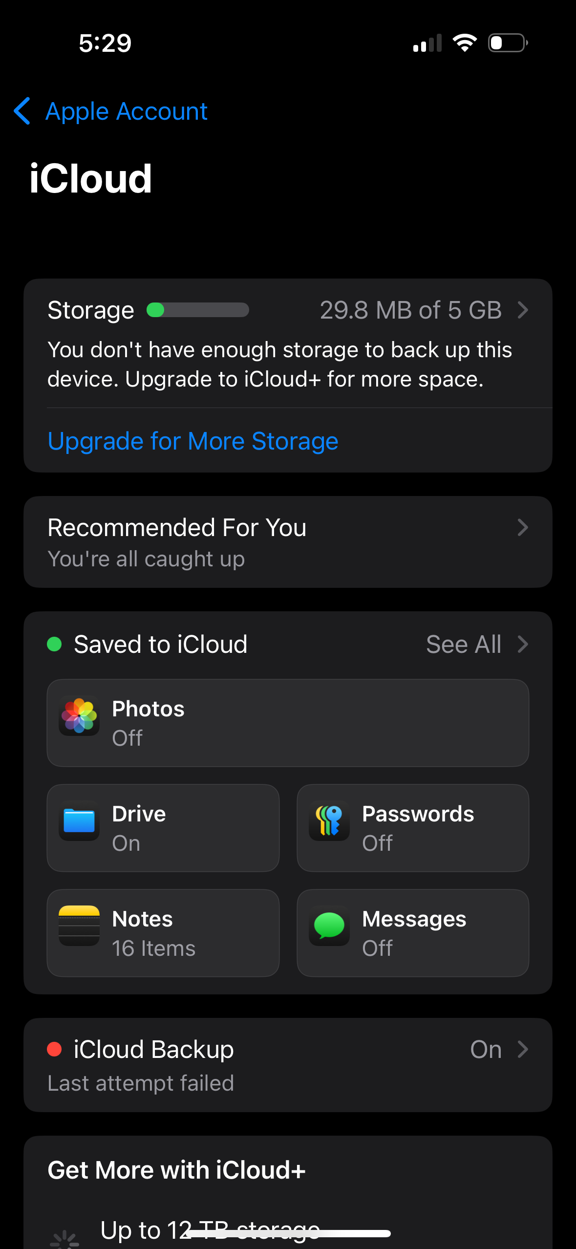 "iCloud cannot back up because not enough storage, but I DO have enough storage."