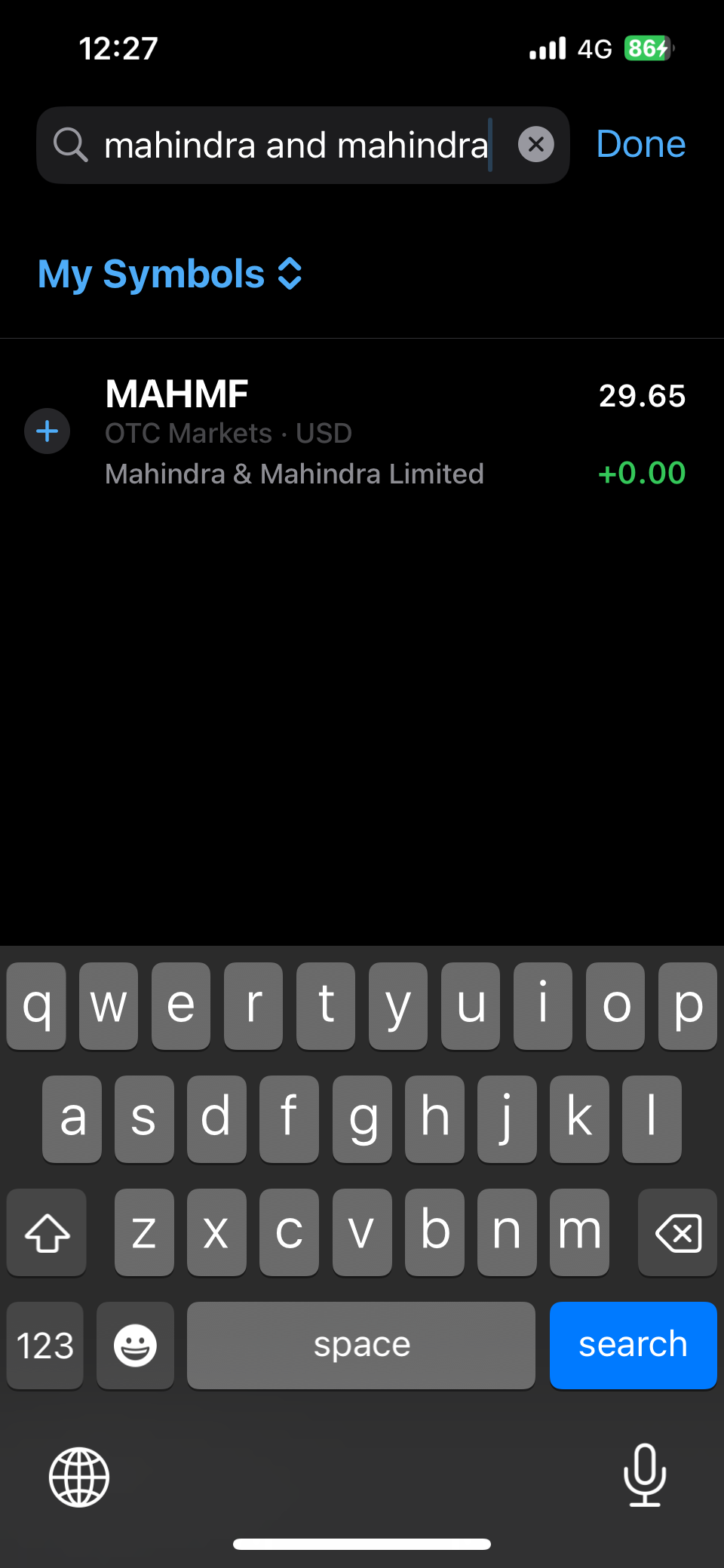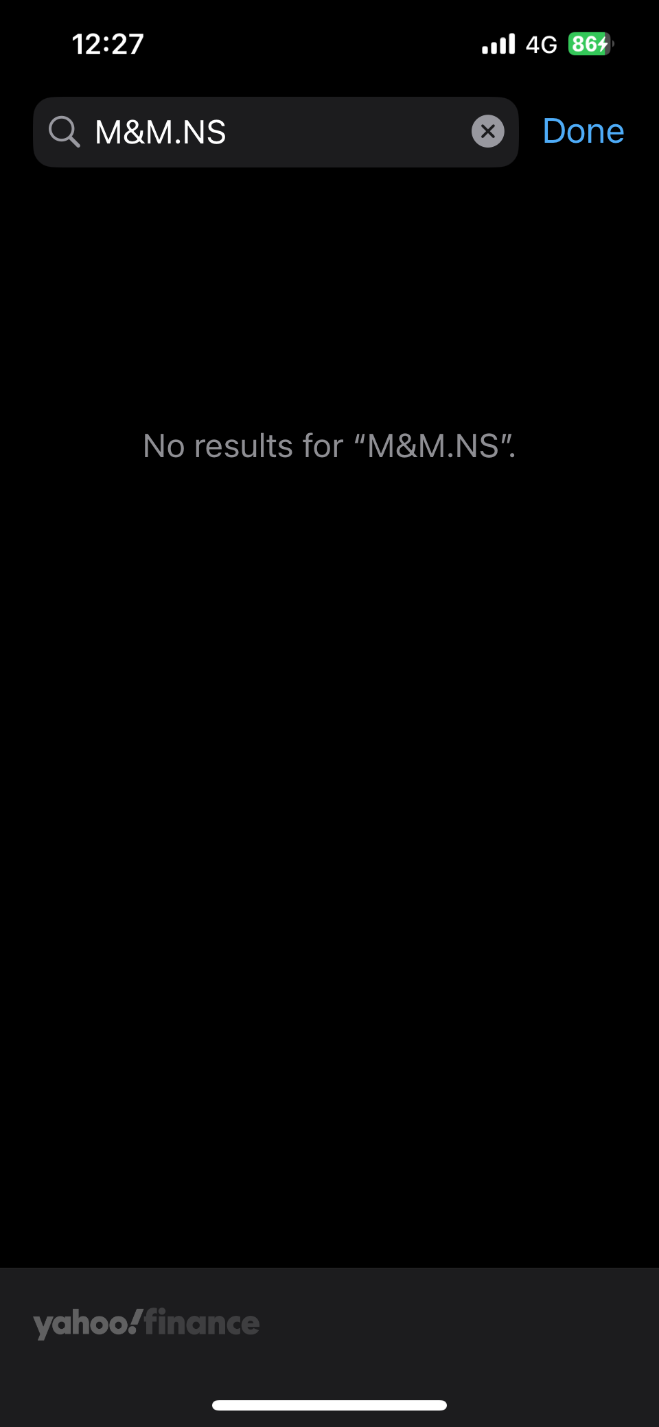 I’m trying to add Mahindra & Mahindra (ticker: M&M.NS) to the iPhone Stocks app and the iOS widget, but it doesn’t appear in the search results. I know the Stocks app gets its data from Yahoo Finance, and M&M.NS is listed and available on the Yahoo Finance website without issue.