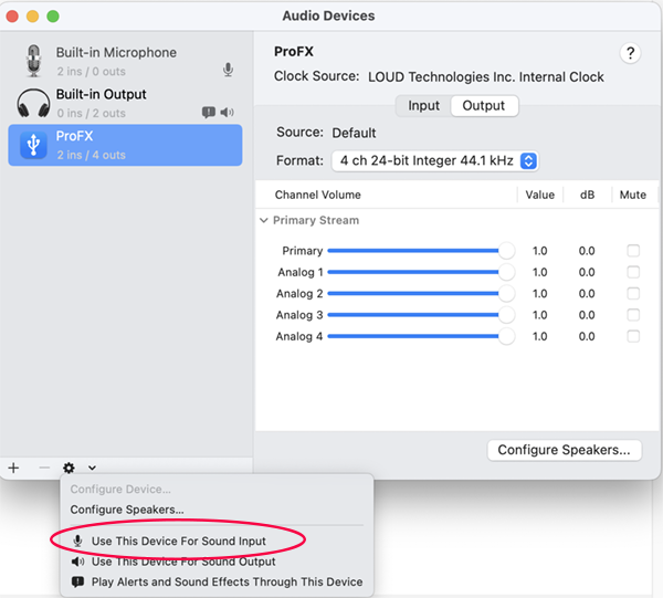 2 - In Audio MIDI Setup (in your Applications/Utilities folder.) Make sure the Behringer device is selected as your INPUT source there. Despite its name, Audio MIDI Setup is not just for MIDI; it controls all audio input & output on your Mac.