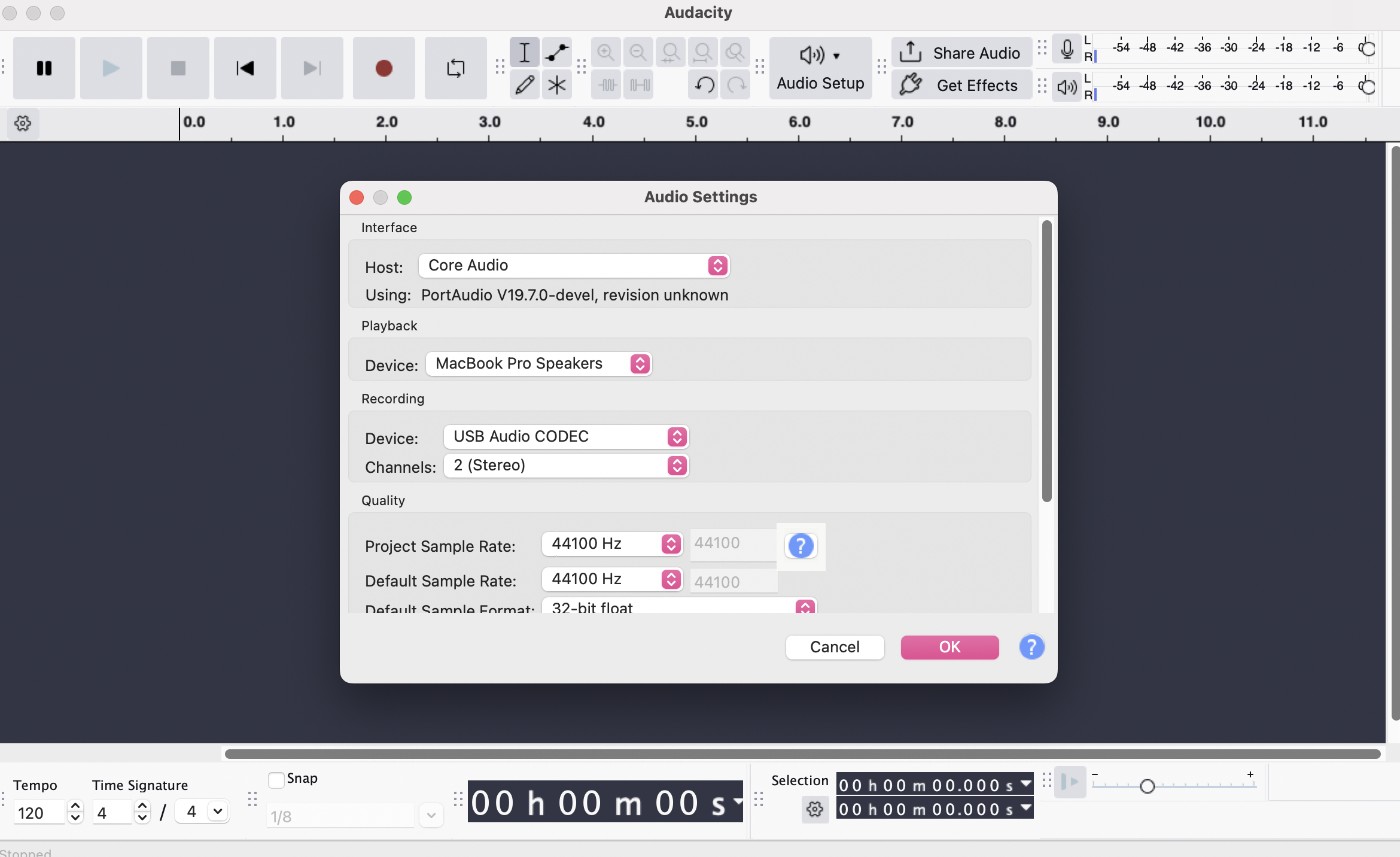 However, my Mac is not recognizing my A-D converter as an input, only as an output, and Audacity is doing the same thing.