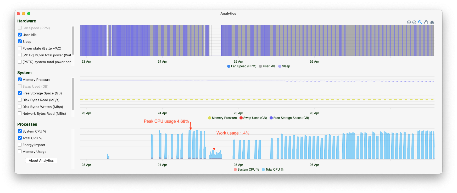 The most consuming processes during this 24 hour sleep interval were: