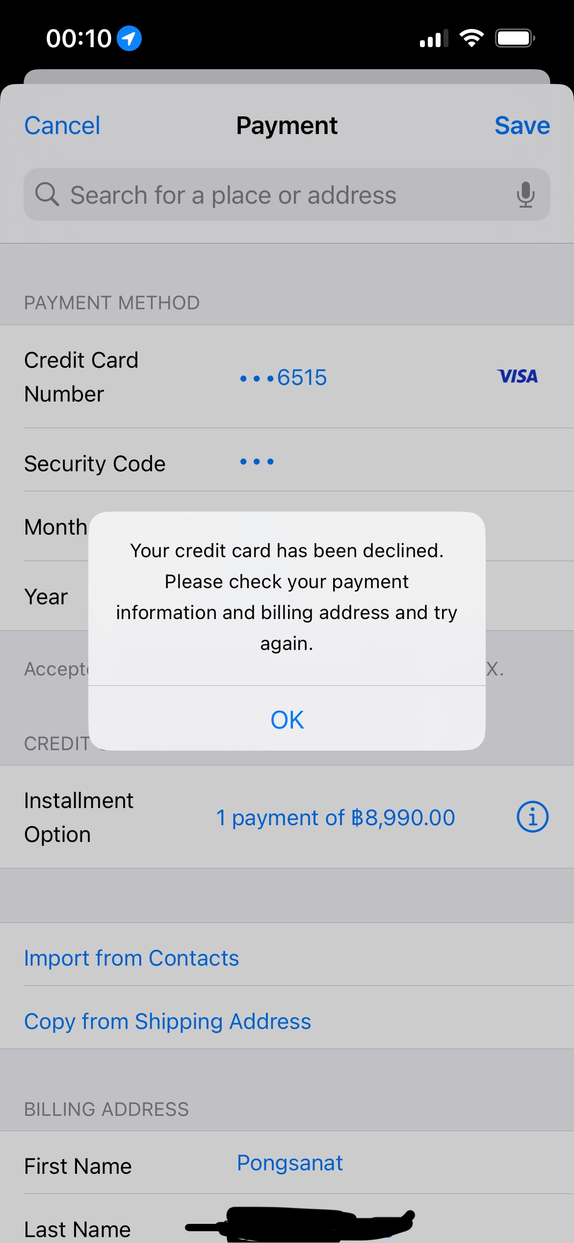 My debit card was declined for several times.