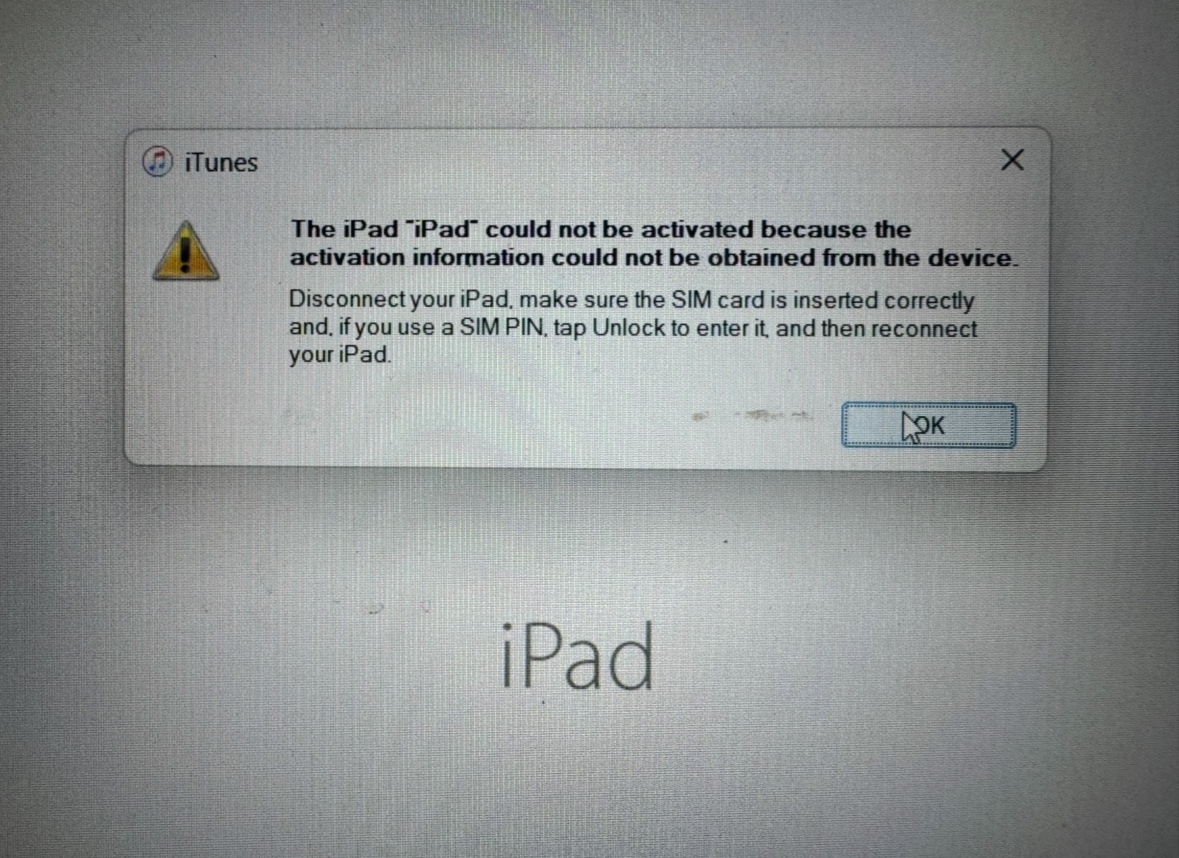 If you are experiencing difficulties with (re)activation of your iPad, you may have more success if you connect your iPad to a Windows PC (with iTunes for Windows installed) or a Mac (with iTunes or Finder - as appropriate for the installed version of macOS). Once connected to your computer, your iPad will be detected - and you should be able to activate using iTunes.