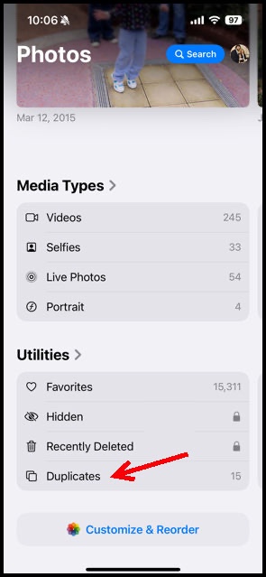 How do I delete duplicate photos in the Photos app?