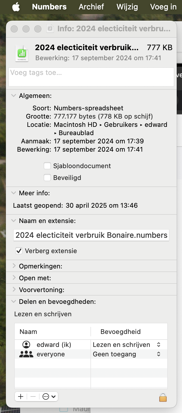 it shows my Apple account with the permission for 'reding and writing'.