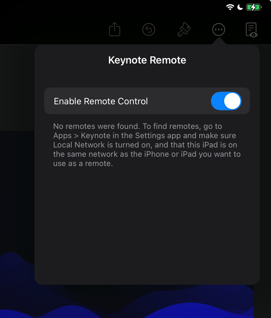 My iPhone isn't showing up under Keynote Remote on my iPad