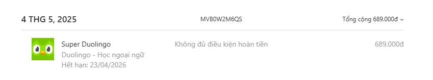 Tôi không có ý định mua mặt hàng này vì không có *** cầu sử dụng và cũng không có ý định đăng ký và yêu cầu thanh toán bị từ chối 2 lần vì cái ap học tiếng anh này. ai biết chỉ tôi với