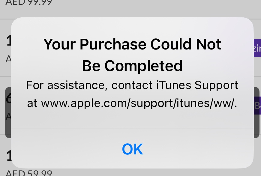 Error "Your purchase could not be completed" on iTunes Store