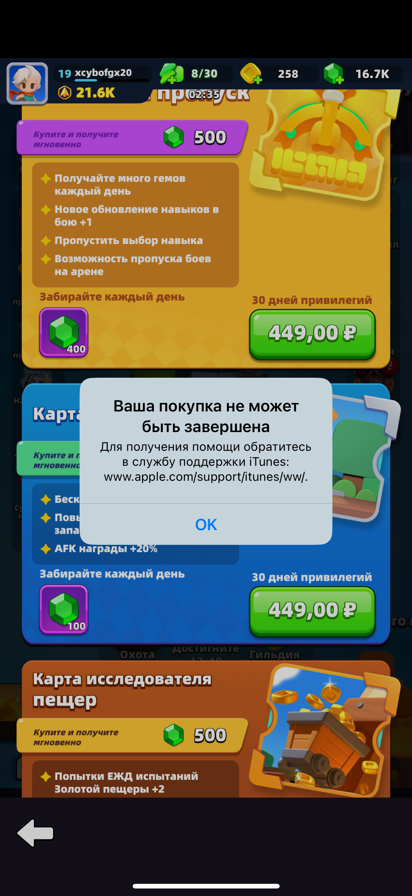 I can't make an in-game purchase using a gift card. I've already been able to pay with a gift card, but now I'm getting an error.