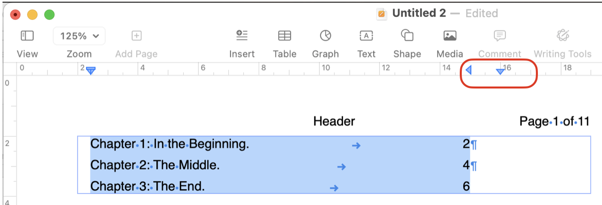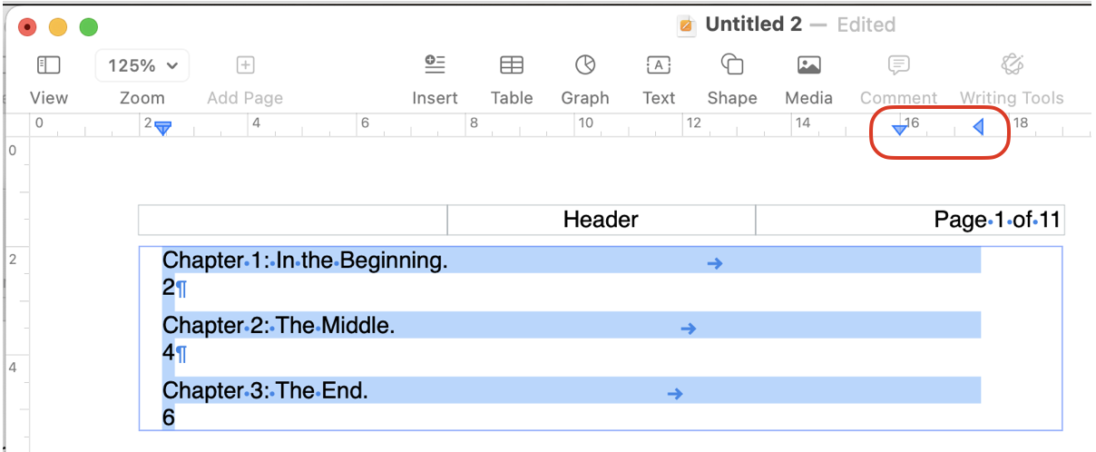I already checked all headers are formatted with the formatting feature, turned page numbers on and off again, closed and re-opened Pages. Changing the indentation does not help, netiher does changing font size or line spacing. I am out of my depth. Help?