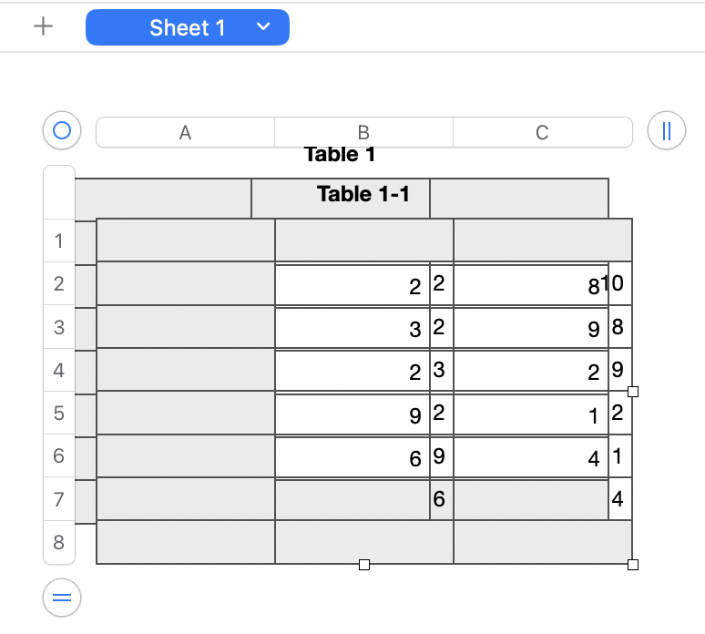 I went to use this table today and this is what I see. It looks like two tables are overlapping. There is a Table 1 and a table 1.1. I've closed it out and reopened it and it's still this way. I used it recently and didn't make a copy of the table. Please help. This is on my iMac but it is the same on my iPad. How do I fix this? I don't want to lose this info.