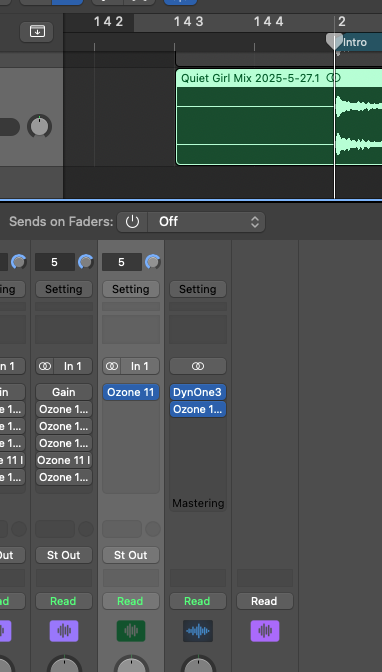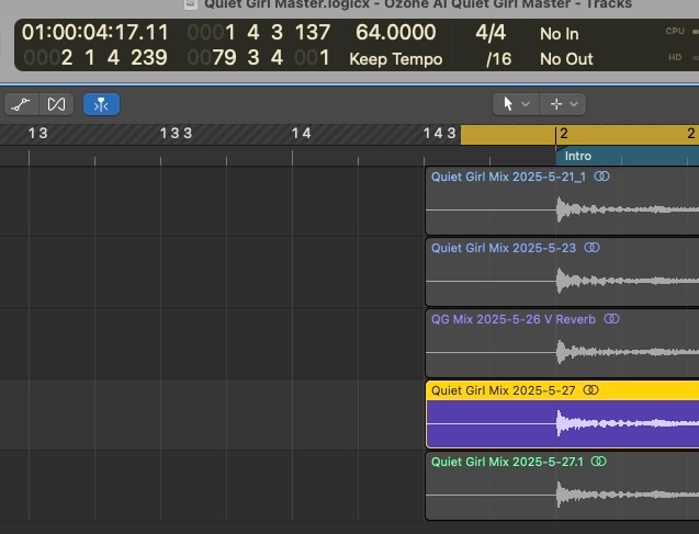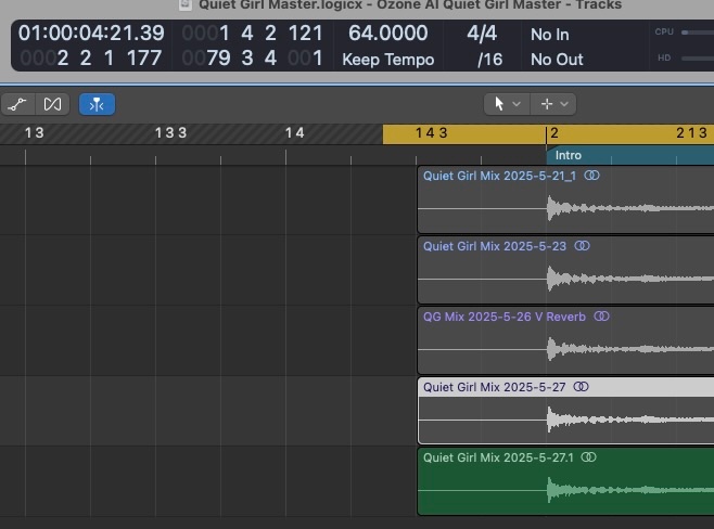 When I try to render an alternate master I'm working on, if I start the playhead where the first transient appears the downbeat is getting cut off. In a previous master using all manually adjusted Isotope Ozone 11 modules it required almost a half-beat lead in (as shown here, where the cycle region starts just before the final 16th of beat 4).