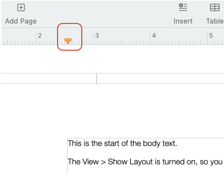 I have a document where the body text is incorrectly placed on the page. The intention is for the body text to be a column that takes 2/3 of the right side of the page, but should go top to bottom. Below you can see the the body text is correctly the 2/3 column width, but should start immediately below the header. There is a large gap that is wasting space.