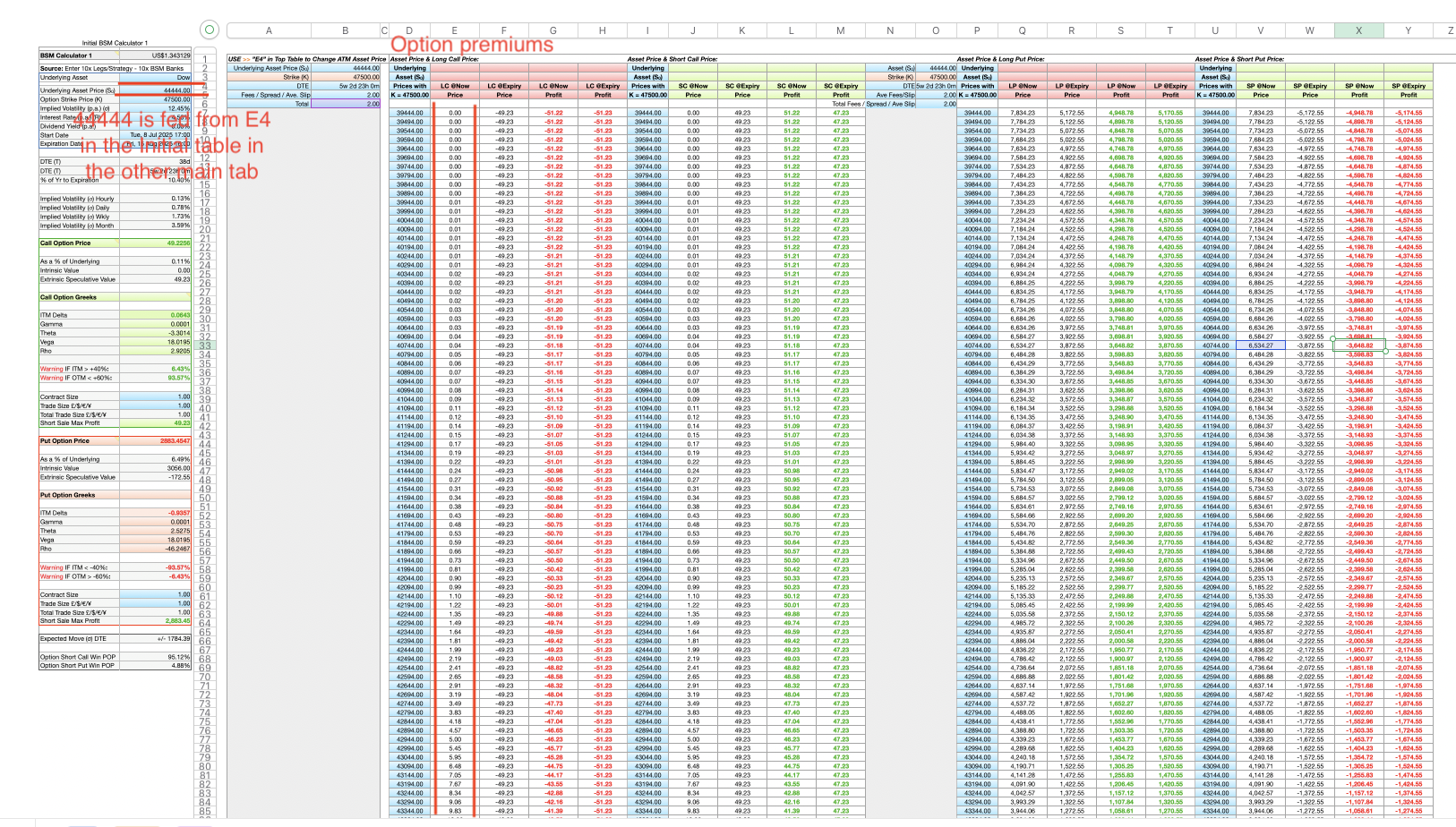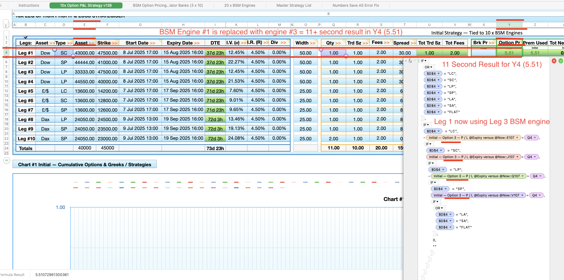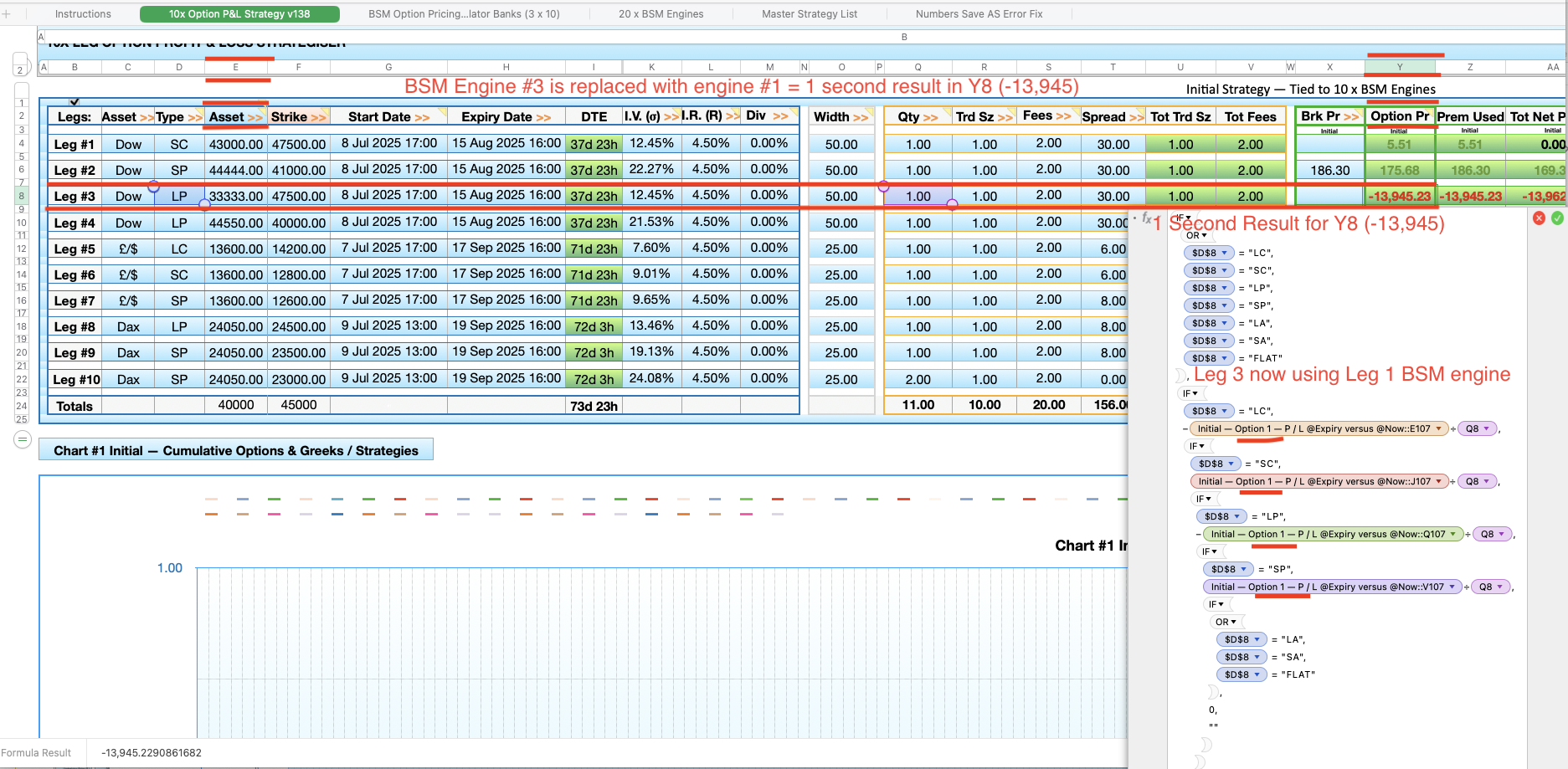 So BSM engine #1 works fine when used in row 8, Leg 3’s calculation for option premium in Y8.
