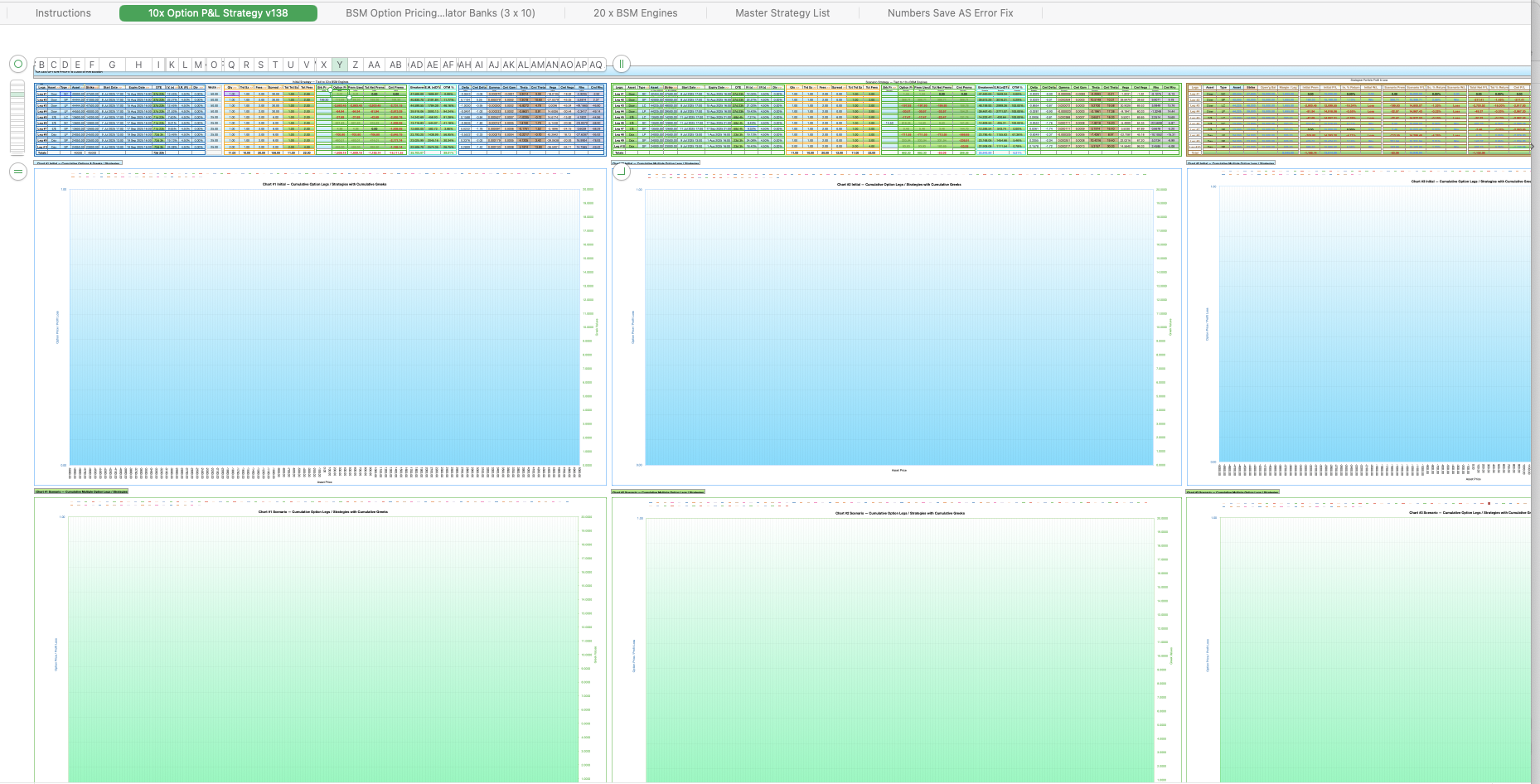 In tab, "10x Option P&L Strategy v138" there is a top left blue bordered table called “Initial Strategy — Tied to 10 x BSM Engines.”