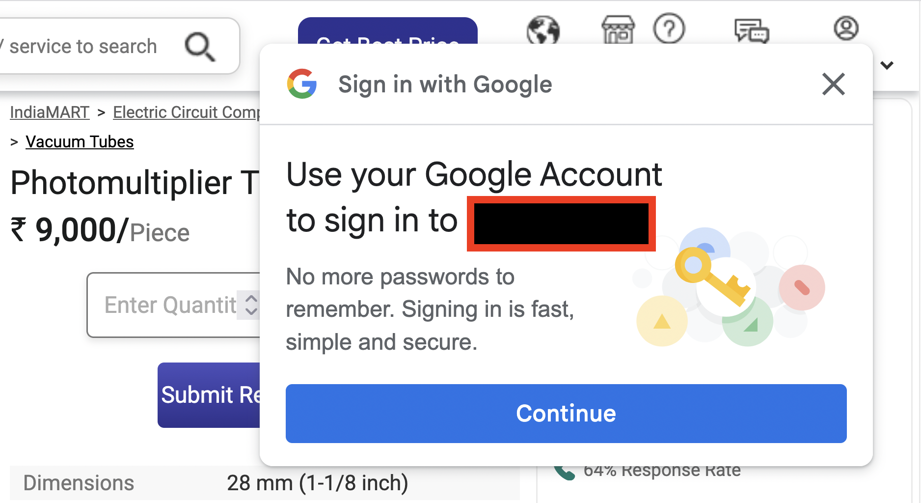 It may be new to you but it's not new. If you tap "Continue," you'll be able to select a Google account and log in using those credentials. And I get the same thing on my Windows computer using both Chrome and Edge. I also get a very similar option if I use Chrome on my Mac. It's a little different because I'm already signed into my personal Google account in Chrome so it doesn't offer me the choice between my two accounts.