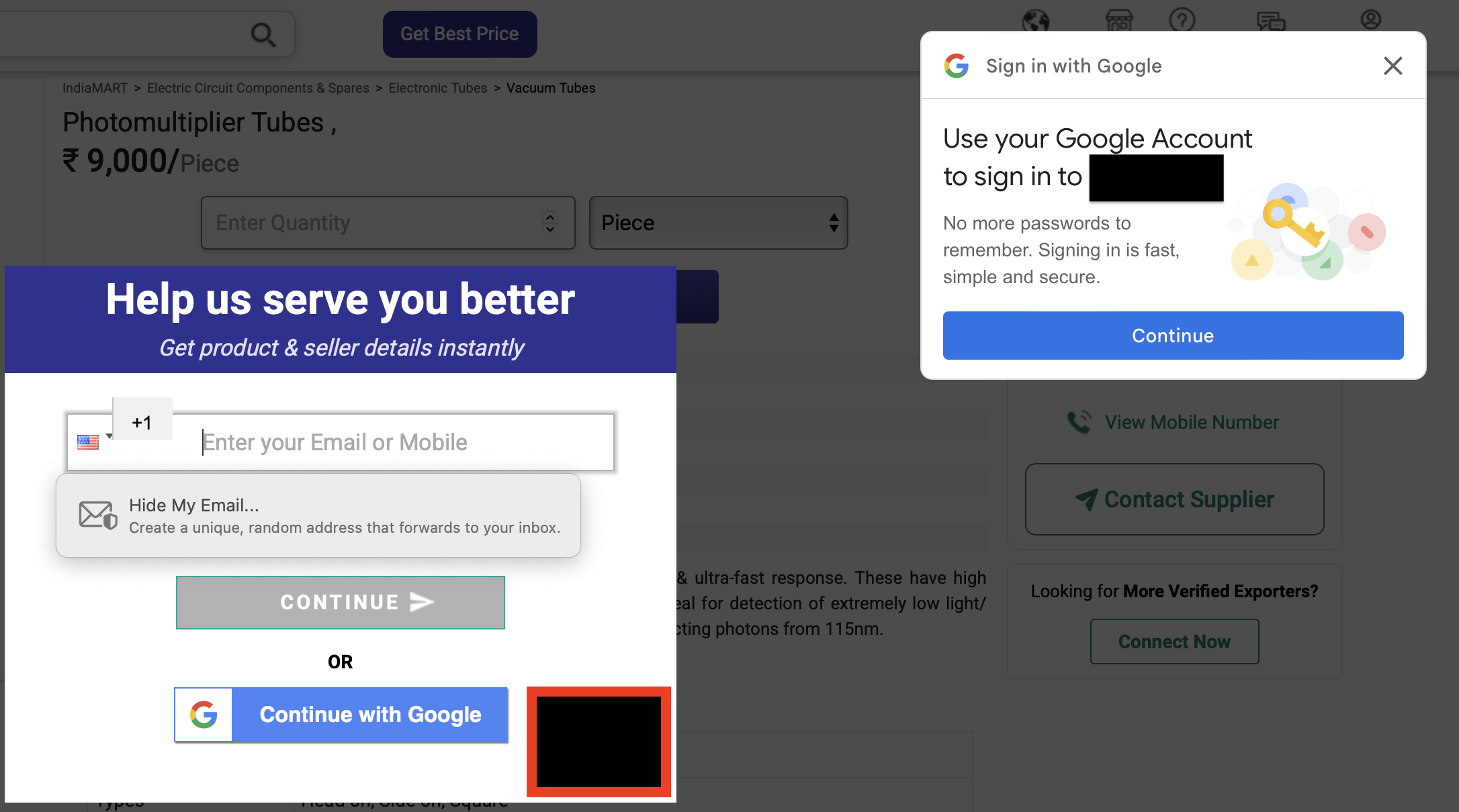 I've been seeing what I think you are describing for years, and that's part of the login screen. That's fine. I can log in with my regular username and ignore the use Apple/Google/Facebook part. This is different. It pops up when I do not have an account. And it persists to the 2nd screen. It is not a regular part of the website's home screen. It is not a login box. I can click something else on the page, and it's still there. I can't move it, though. After the third click, it's finally gone.