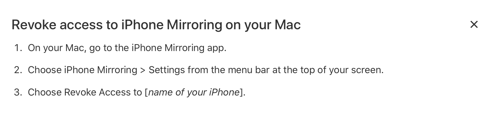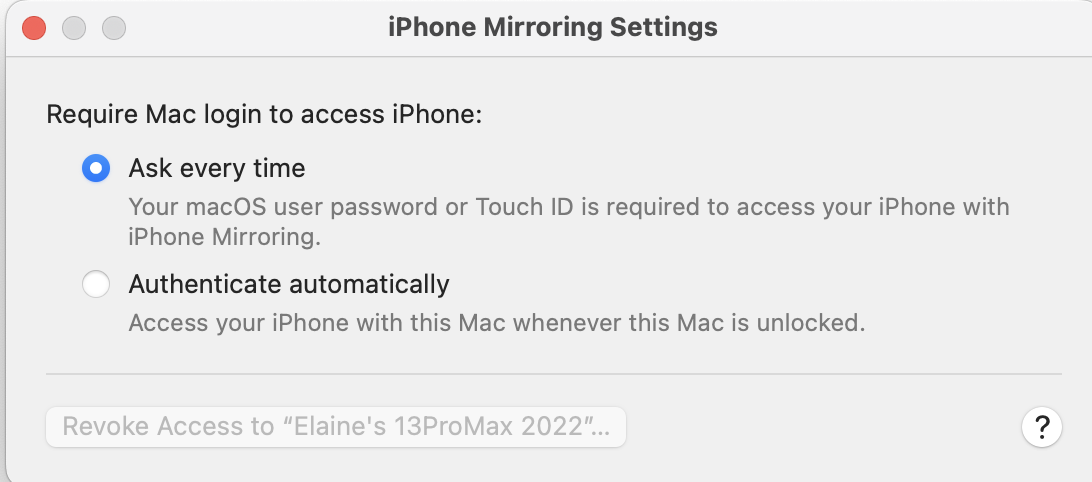 iPhone Mirroring Controls are not where Apple says they should be