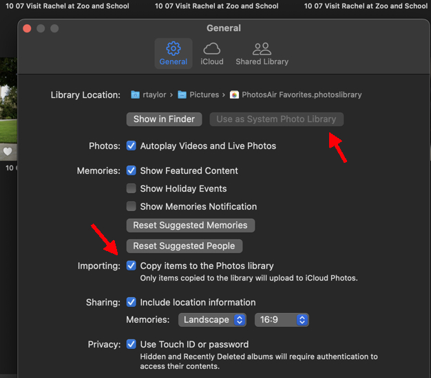 In this picture "Use as your System Library" is grayed out, because it already is the system library. Only the System Library can connect to iCloud.