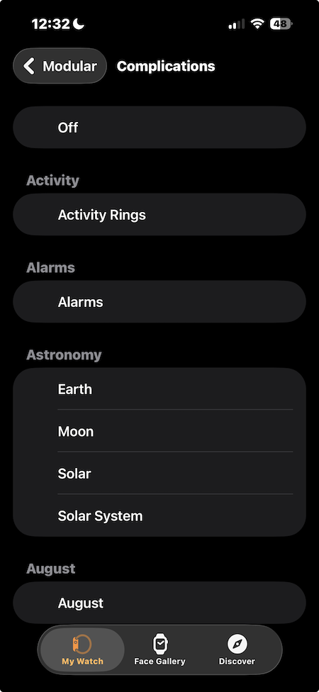 Certain complications not showing up in Apple Watch App