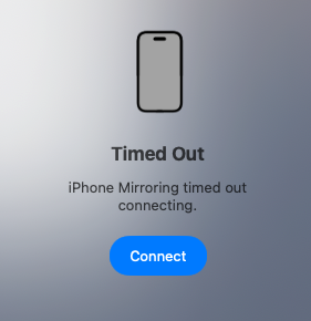"iPhone Mirroring Timed Out Connecting" after IOS26 update