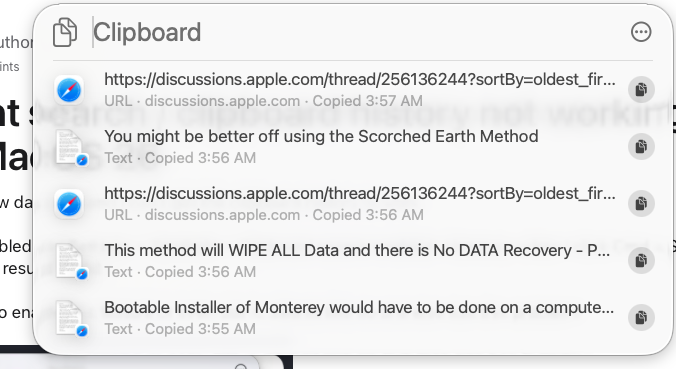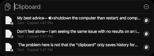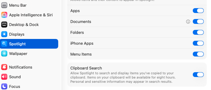 Spotlight search / clipboard history not working in Tahoe MacOS 26