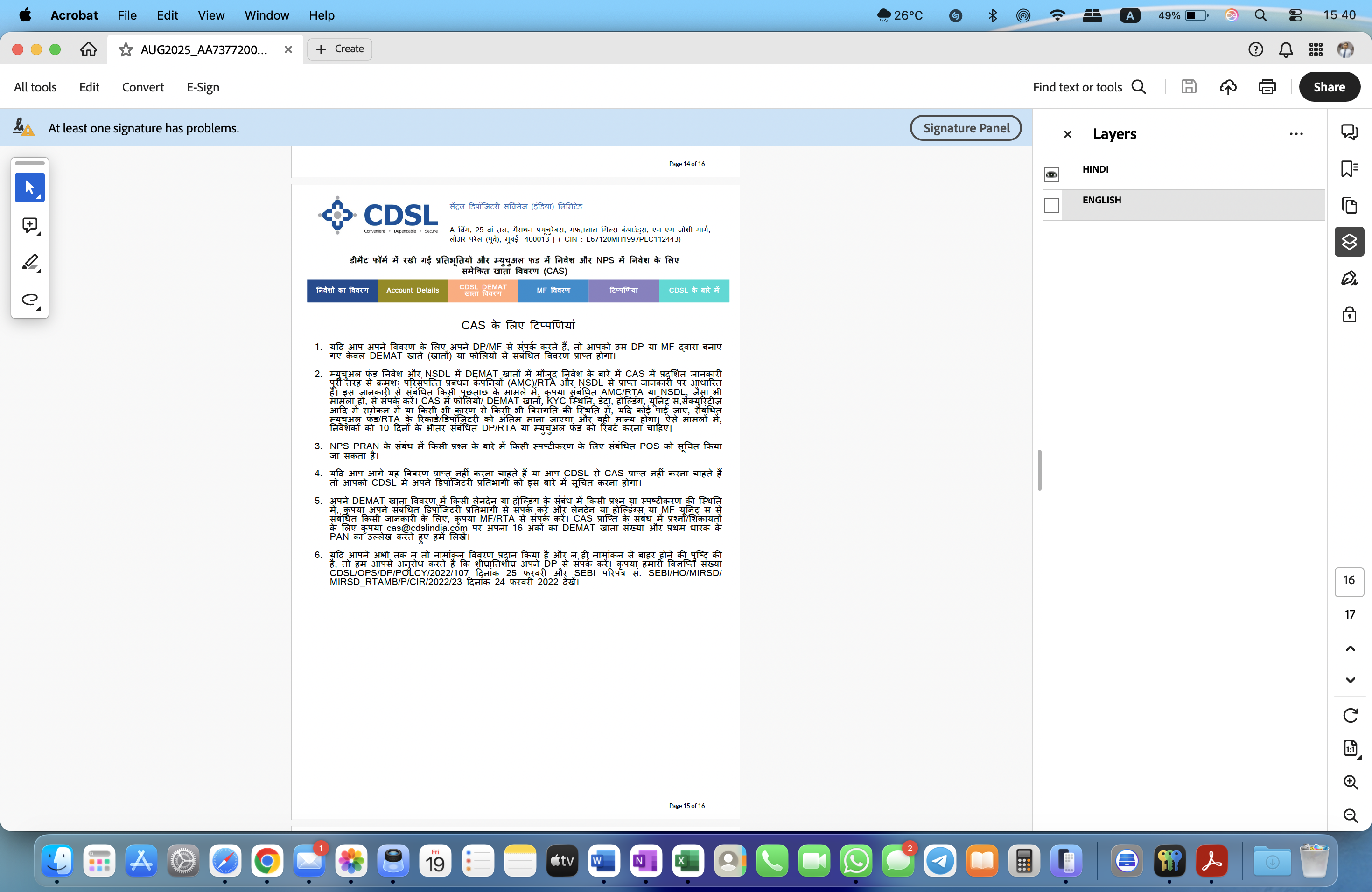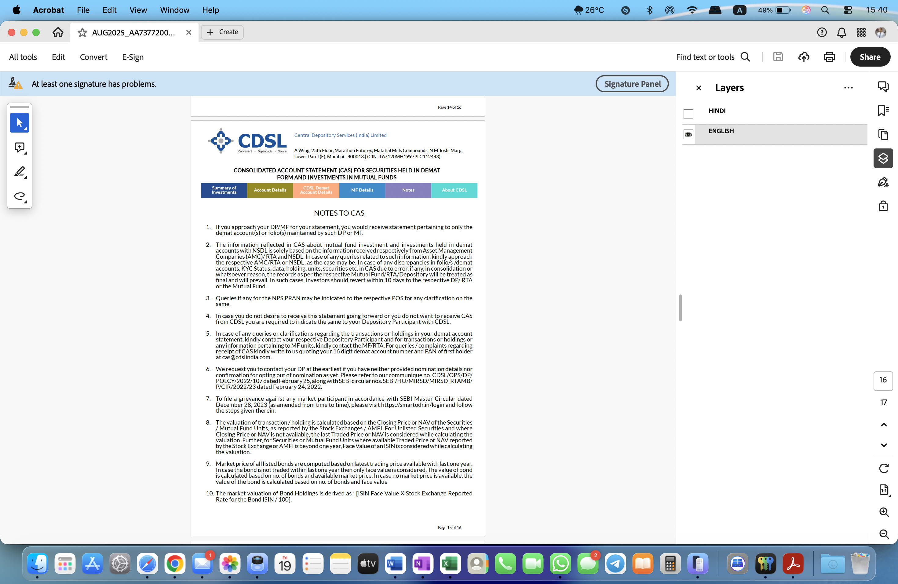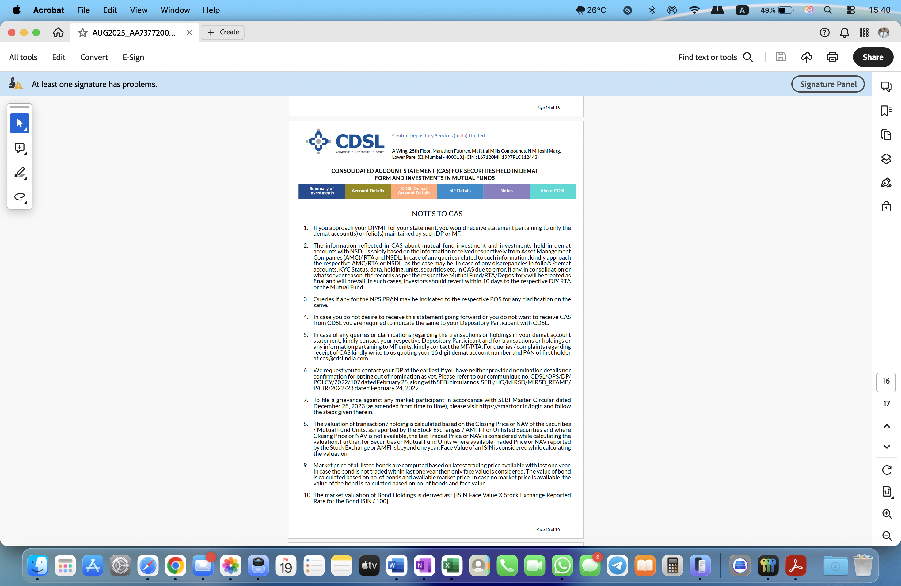 So I was facing this issue from a very long time that eCAS generated from CDSL websites were being opened with jumbled text and I was unable to read them on my Mac with Preview App. I never wanted to download Adobe Reader to view the file. After lot of internet search I have come to the conclusion that Preview App is unable to view this file and can only be opened correctly with Adobe Reader. After installing Adobe Reader the file is being displayed correctly. I want to ask the community and conform whether this is a known issue with Preview App? Please see snapshots of the file in both Preview and Adobe Reader. I don't want to use Adobe and want to continue with preview App but this issue seems to be messed up.
