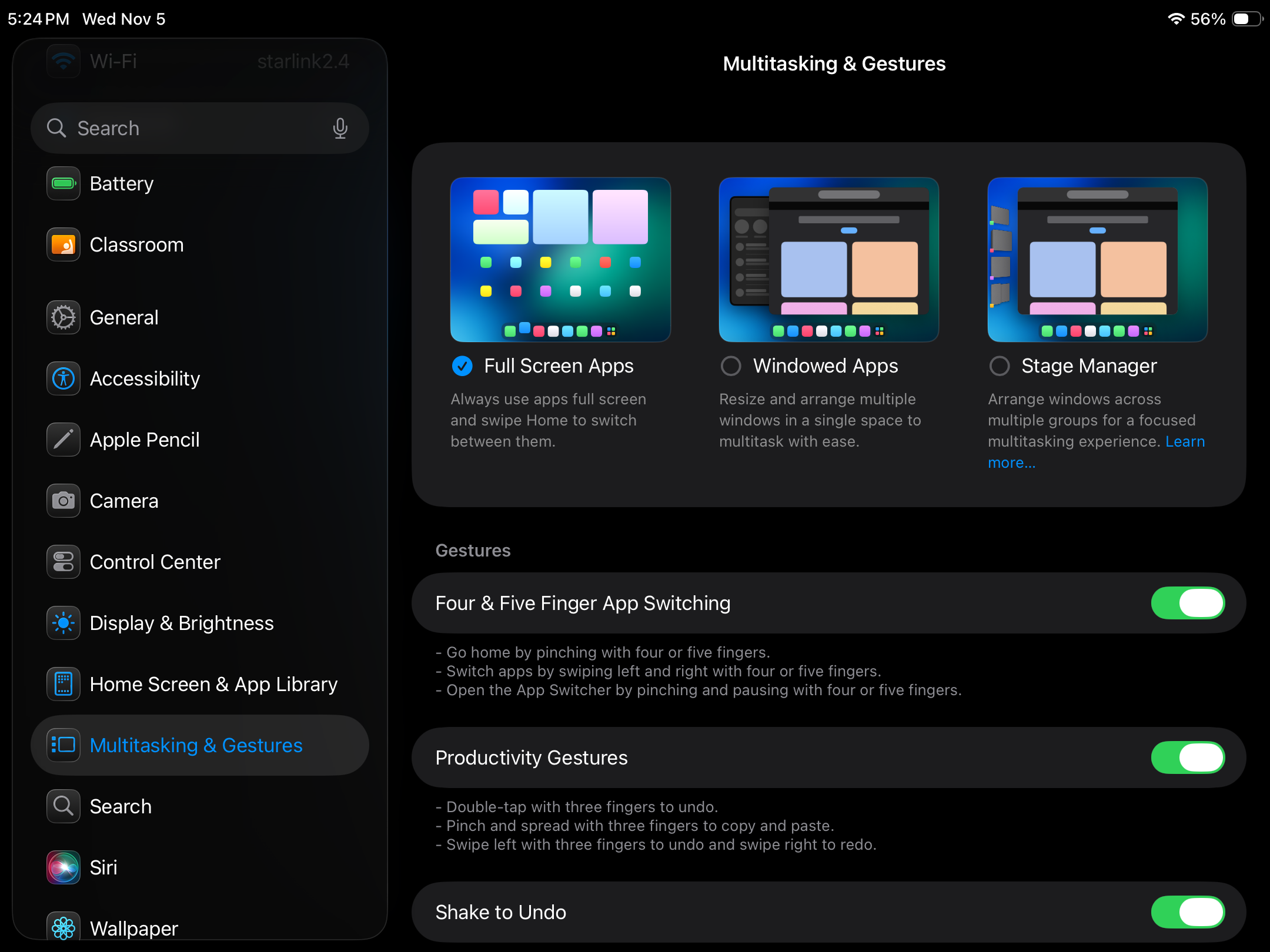 Remember, for iPadOS 26, you have a configuration choice to use Full Screen Apps only, use Windowed Apps, or Stage Manager mode as you prefer: