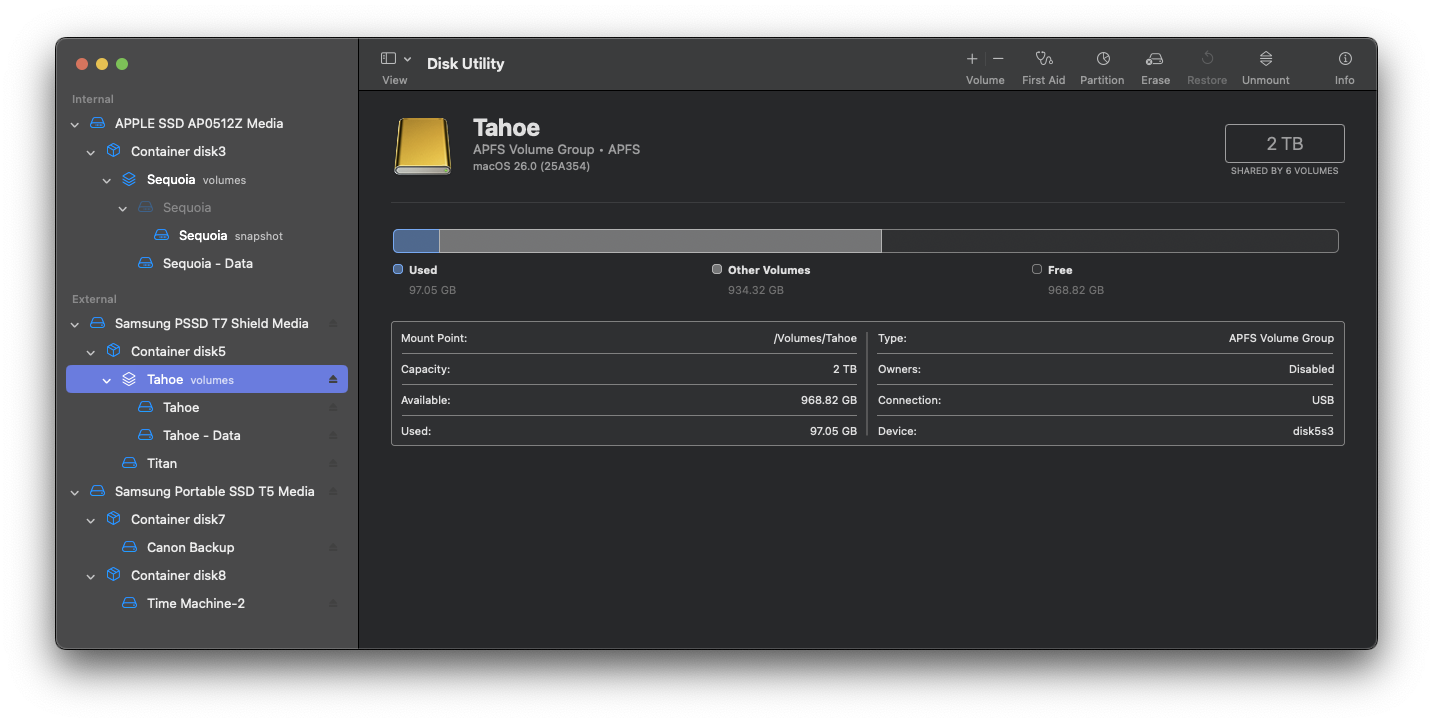 Tahoe mistakes internal SSD APFS volume as encrypted and will not mount