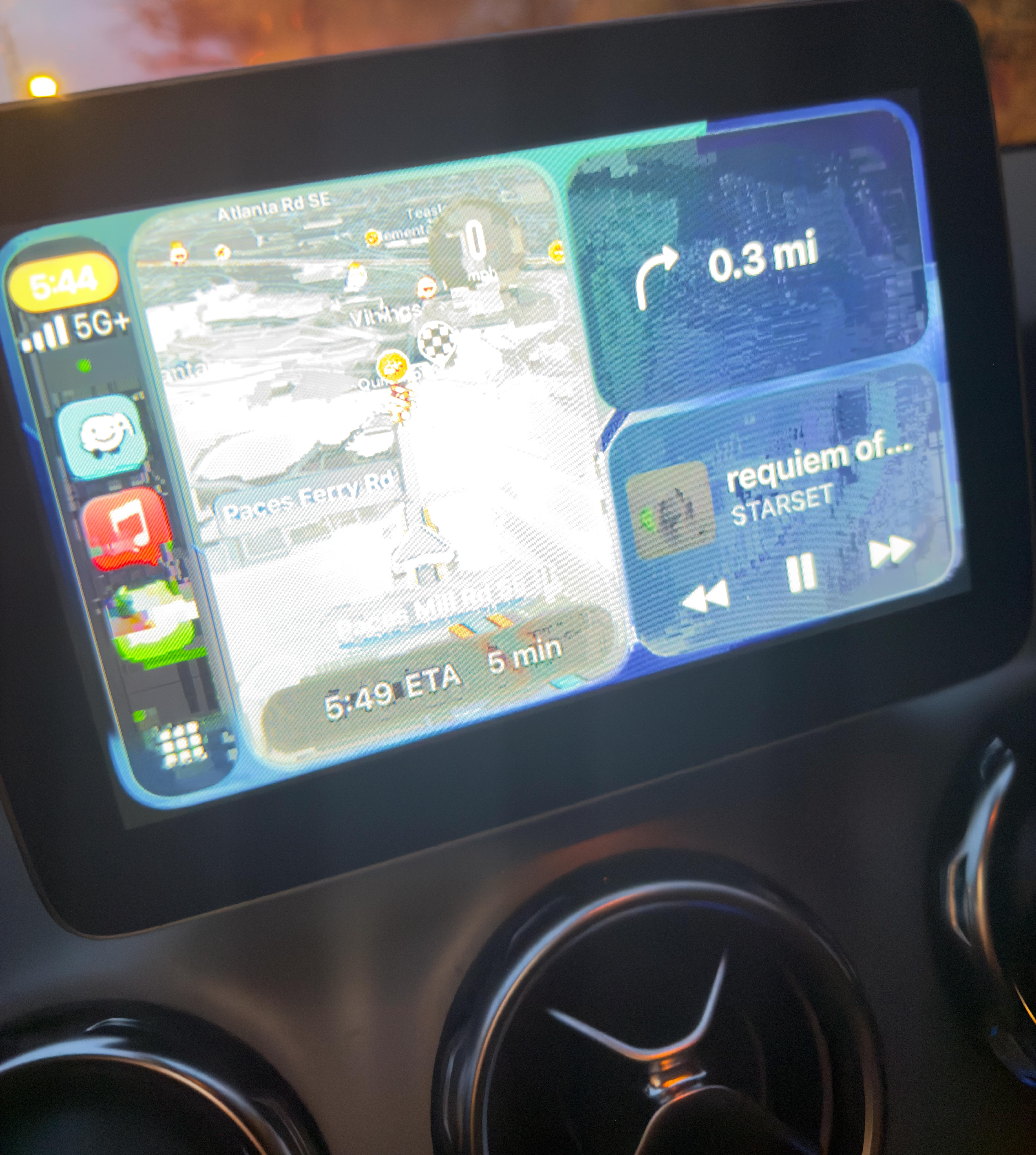Pixelated Apple CarPlay screen on iPhone 17 Pro Max with Mercedes BClass W246