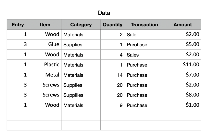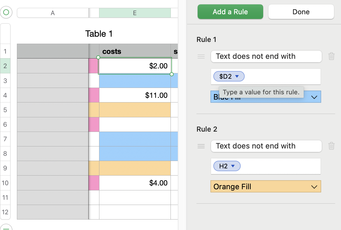The idea here is that the user only enters columns A-D. The rest of the table is filled out automatically based on the values in column A.