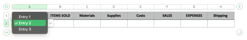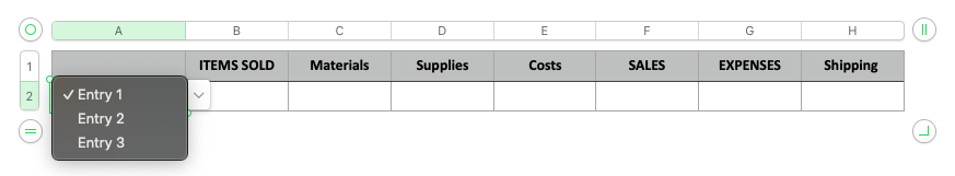There's nothing special about columns A-D, except that column A may be a Pop-up menu with the "Entry' items.