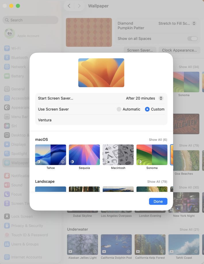Missing folder screensaver option in macOS Tahoe