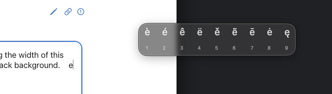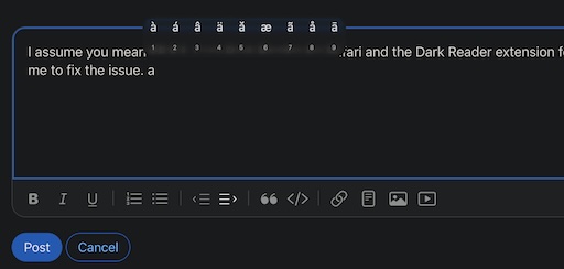 - When using either Firefox or Safari, when I attempt to enter an accented character, e.g., é, the accent popup window appears, but it is white. So is the text it contains. I, thus, cannot use it.