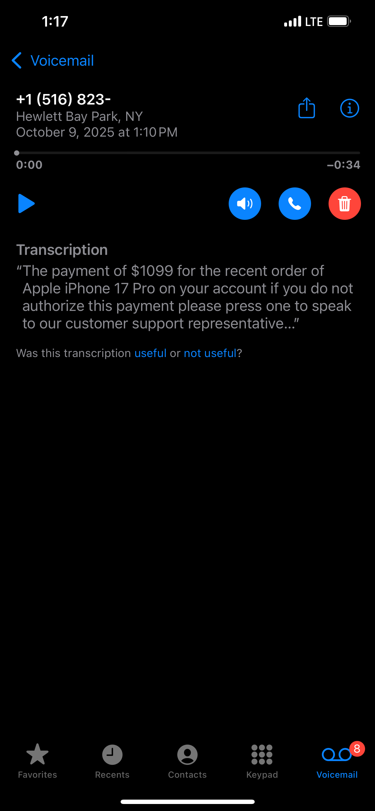 I missed a phone call and got this voice message. Want to confirm whether this can be a scam..