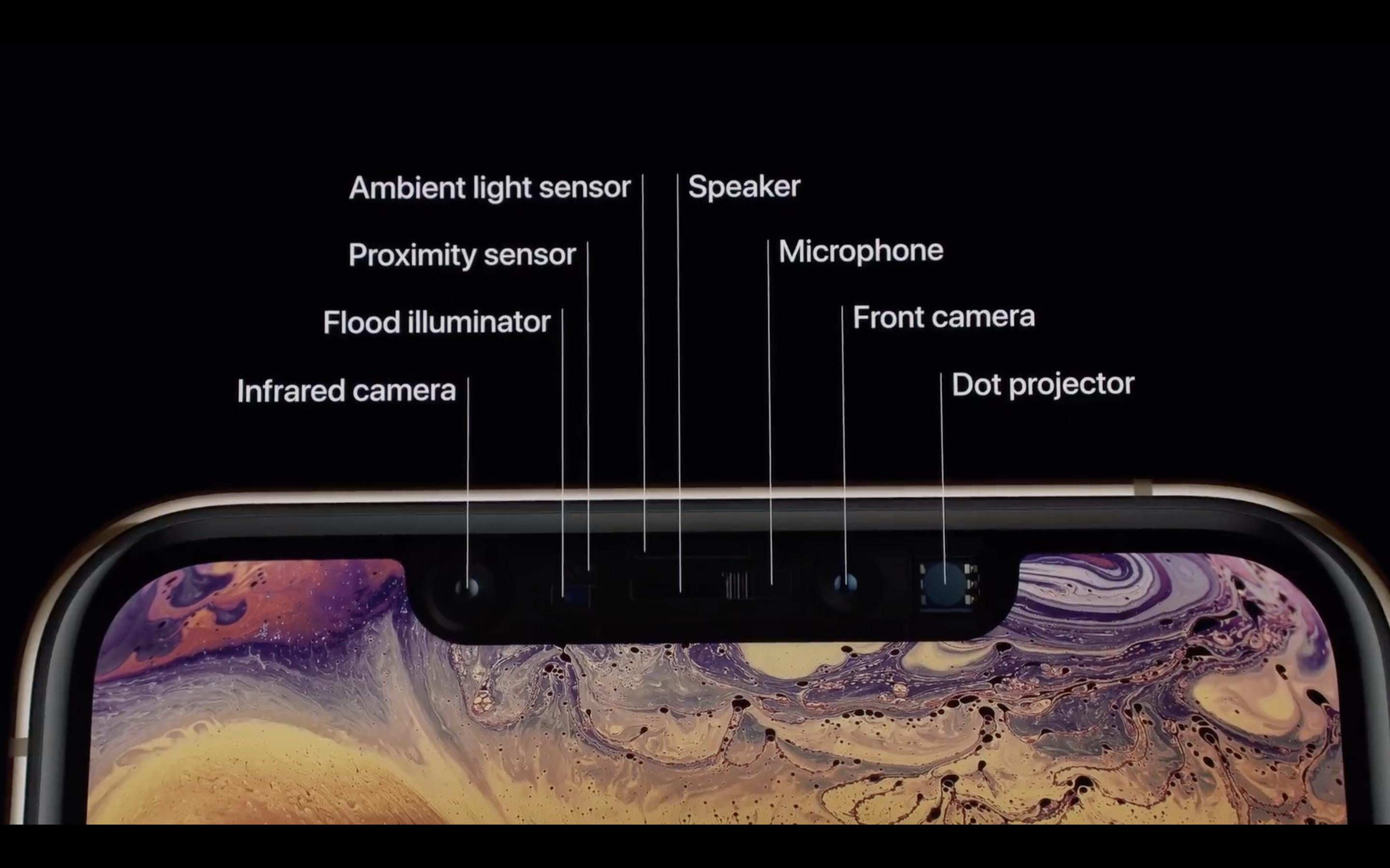• When viewed through certain types of cameras, you might notice light output from the TrueDepth camera. This is expected as some cameras might detect infrared light. Some might also notice a faint light output from the TrueDepth camera when viewed in a very dark room. This is expected in extremely dark settings.
