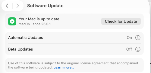 Is the user saying in >> System Setting >> General >> Software Update >> Check for Updates