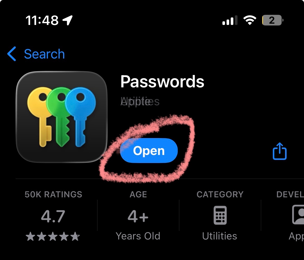The I select “Passwords” app .