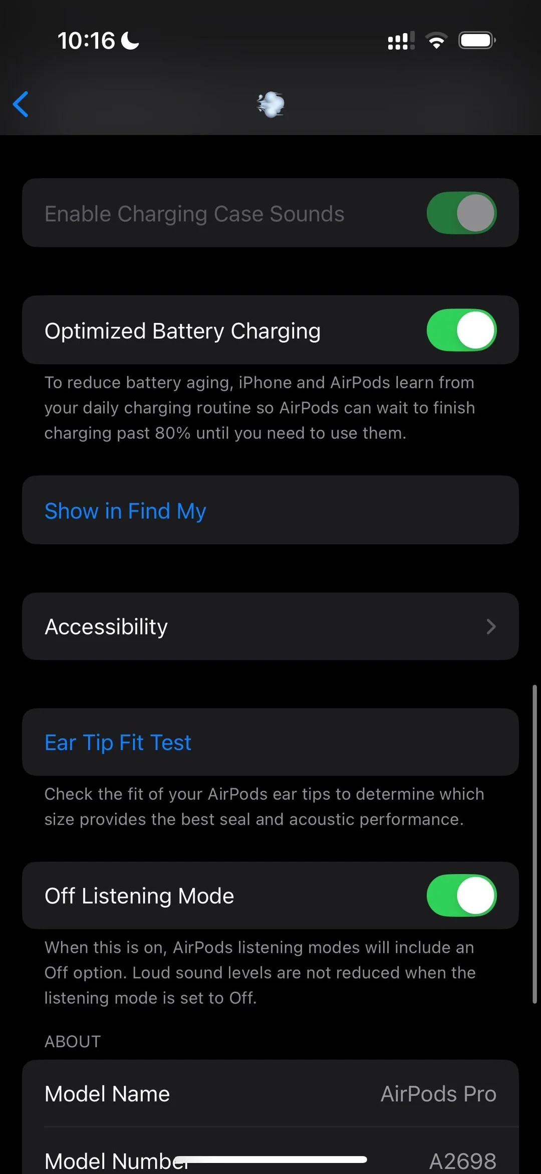 Because of this other find my features wouldnt work. I have tried resetting everything, including my airpods, and my phone, for multiple times. Also when pairing another AirPods Pro to my apple account, it also has this problem.