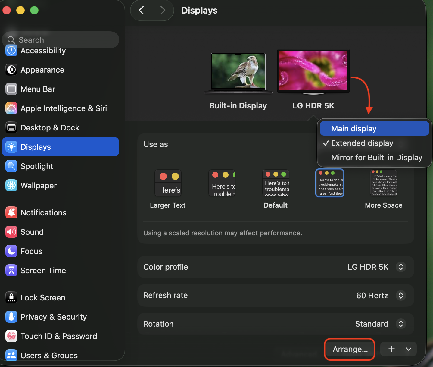 With other display arrangements, things may vary. JulyIGHOR and Barney have already discussed what could happen with displays set atop one another. And if the displays are side by side, and the Dock is set on one side instead of at the bottom, then it will only stay on the display that is on that side.