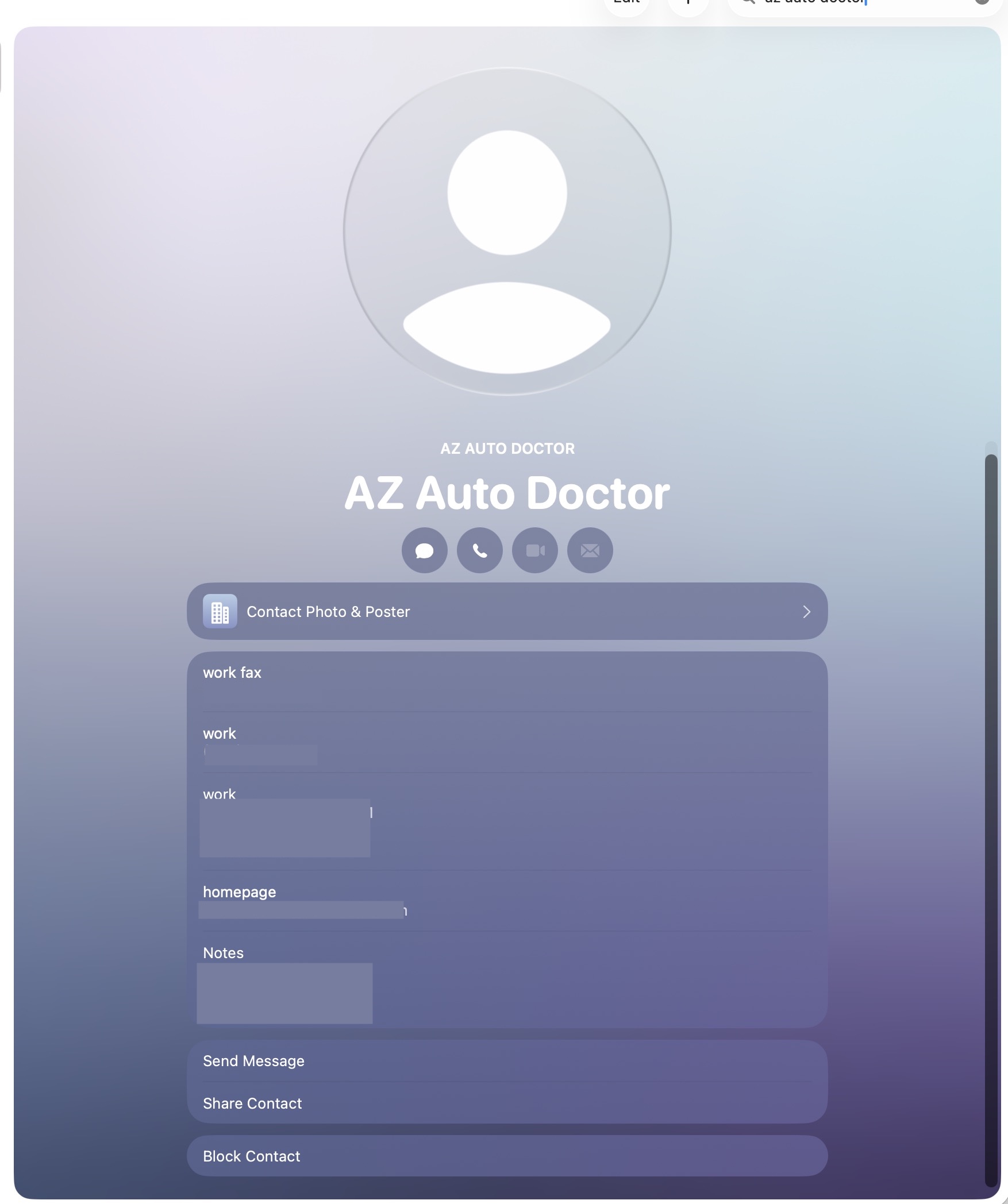 Since upgrading to Tahoe, the new Contacts App will only display the Company name if Company is selected. The contact card will display the Company name twice, in large font and small font, where the person's name should be. The only way to see the person's name is to "Edit."This is the same on iPhone and iPad. Surely this is not intentional.