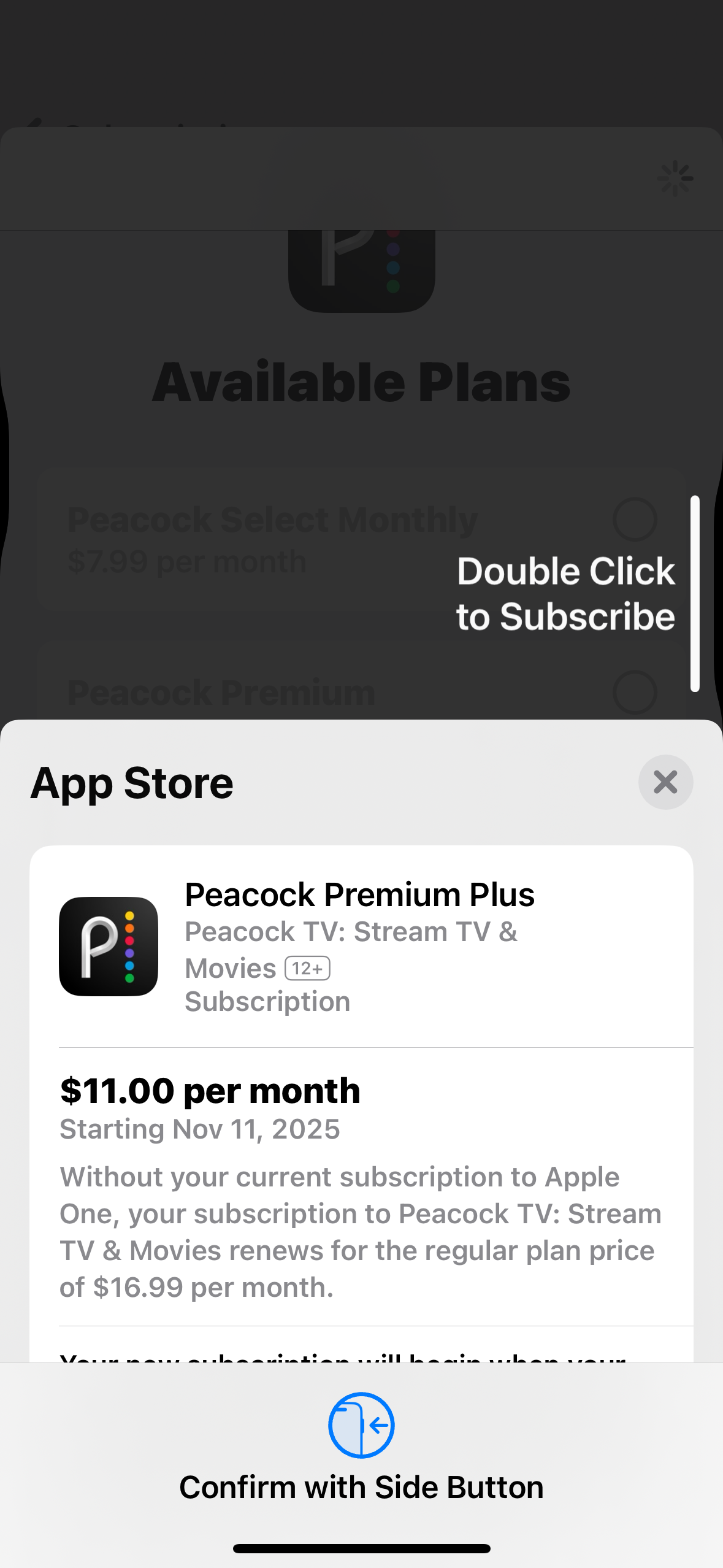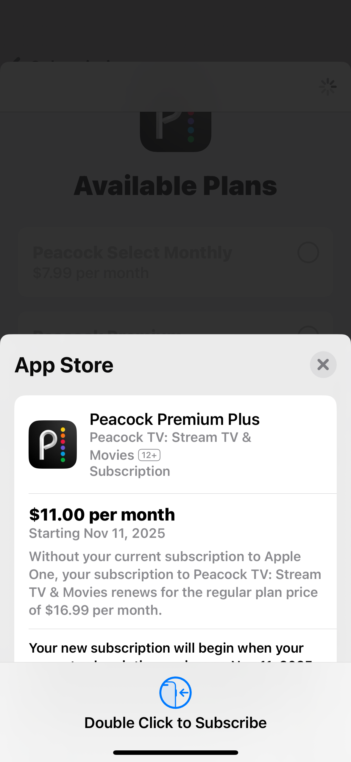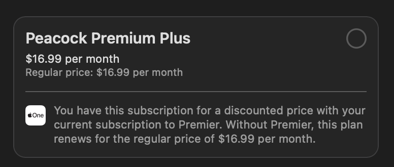 I was existing Peacock subscriber and I was subscribed through Apple subscriptions I called Peacock about a month ago. The one good piece of advice they gave me was cancel your subscription through Apple. They felt I had to do bundle through Apple ONE.