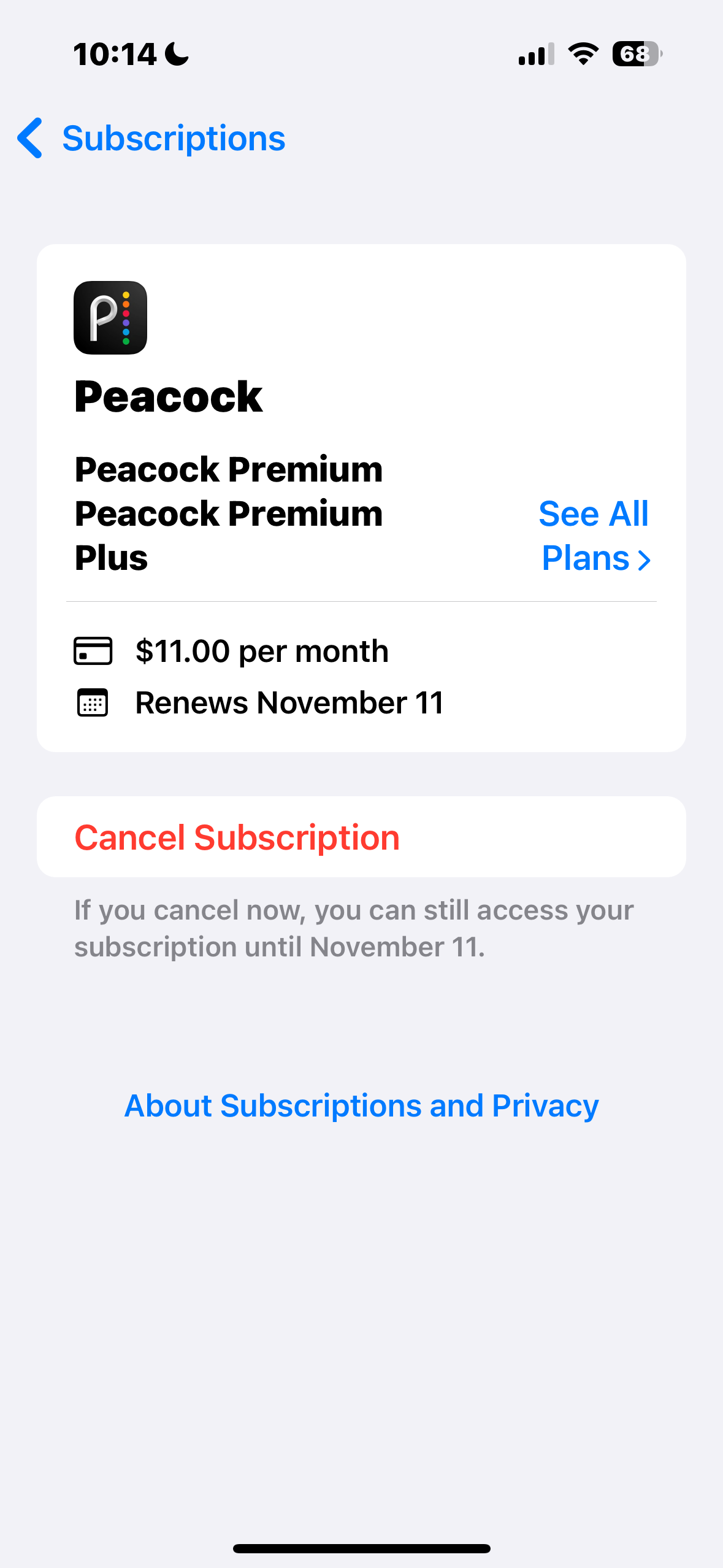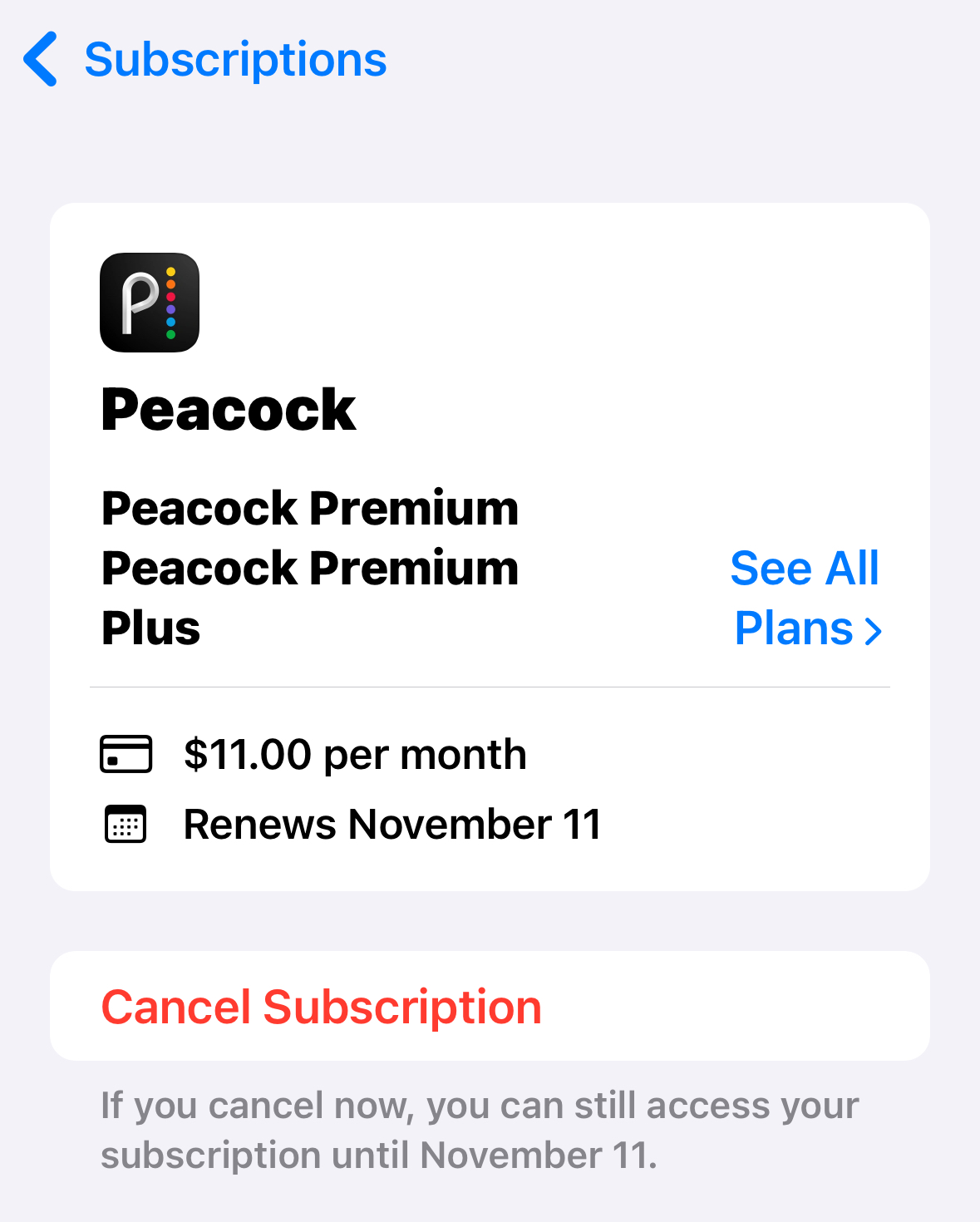 You may be wondering where my 16.99 plan came from. That was my original Peacock premium plus plan through Apple subscriptions. Before the bundle.