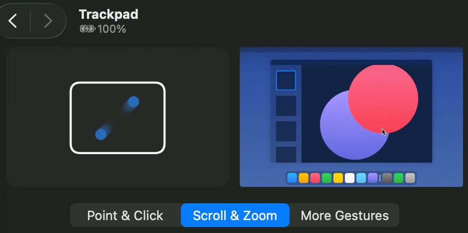 - Toggle pinch to zoom in Trackpad settings