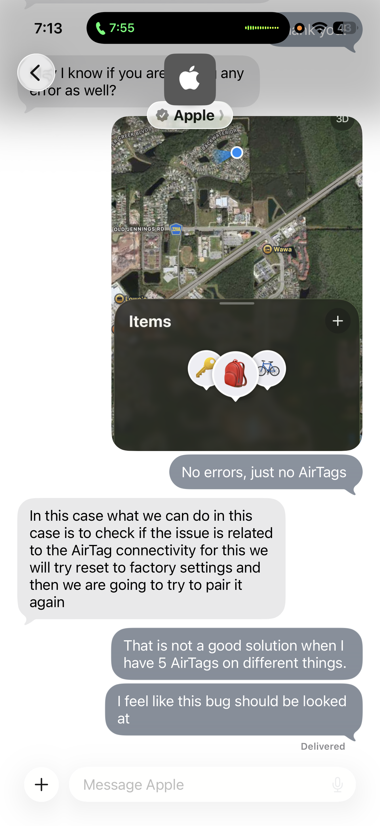 So naturally, I opened a support case. The Apple iMessage text support person informed me that I needed to reset and re pair all of my AirTags. I have 6 of them on my account. This is an unreasonable solution due to my AirTags still showing on my Mac and account in general.