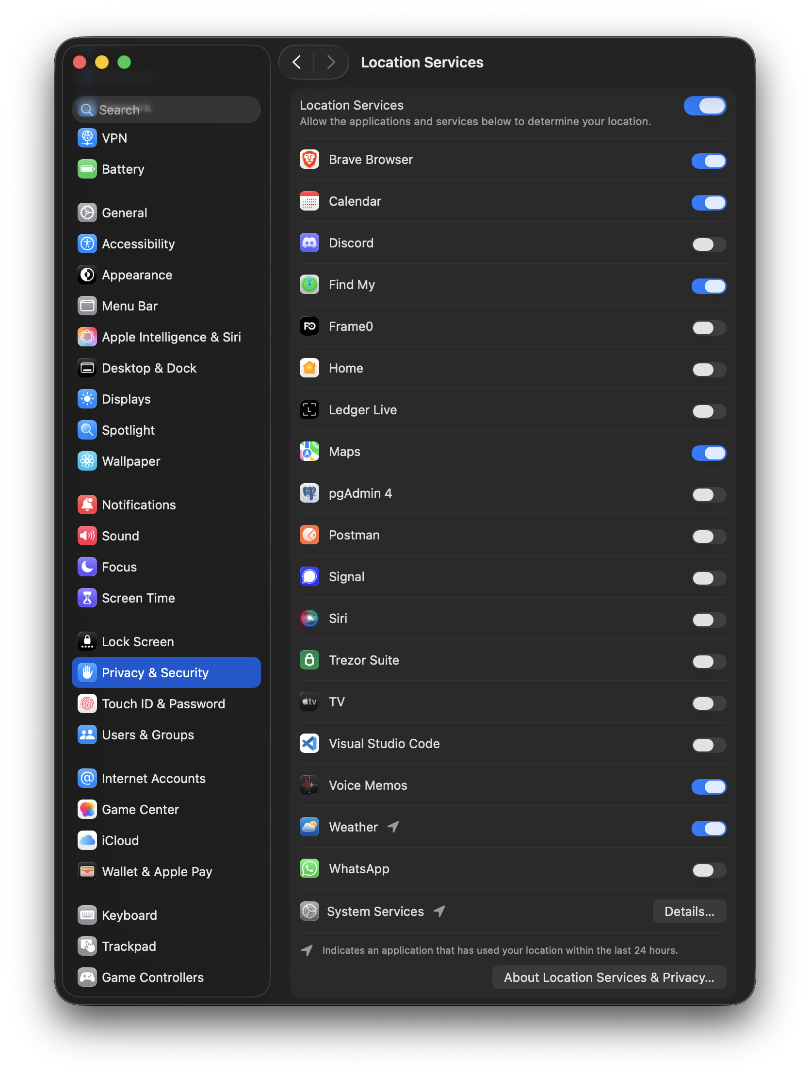 When I check location services in settings, safari is not even listed to enable location access to safari. I'm using macOS Tahoe 26.0.1 (25A362).