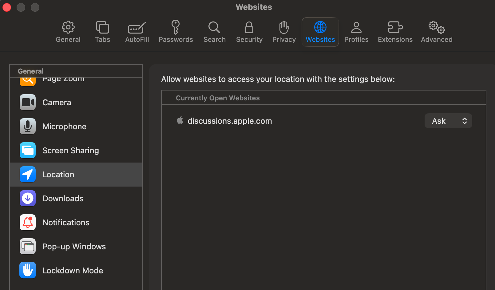 I am unable to share my location to websites when using safari. The permission is auto denied.