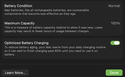 I find it pretty frustrating that Apple doesn’t let us manually limit charging on macOS like it does on iPhones, especially since there’s solid evidence that keeping a lithium battery at 100% stresses it to a degree over time. I’ve read several technical articles about it, including this one from Battery University: